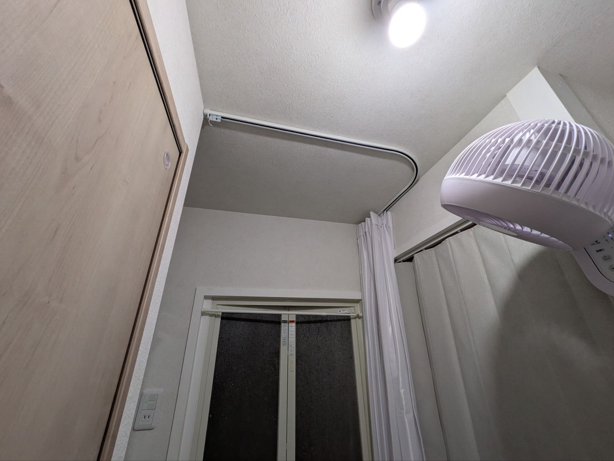 設置には天井下地にMクロスを使ってもらい、あとはカーテンレールをいい感じに切るサイズ合わせがドキドキした程度です。レースカーテンの高さ選びも若干手間でしたが…